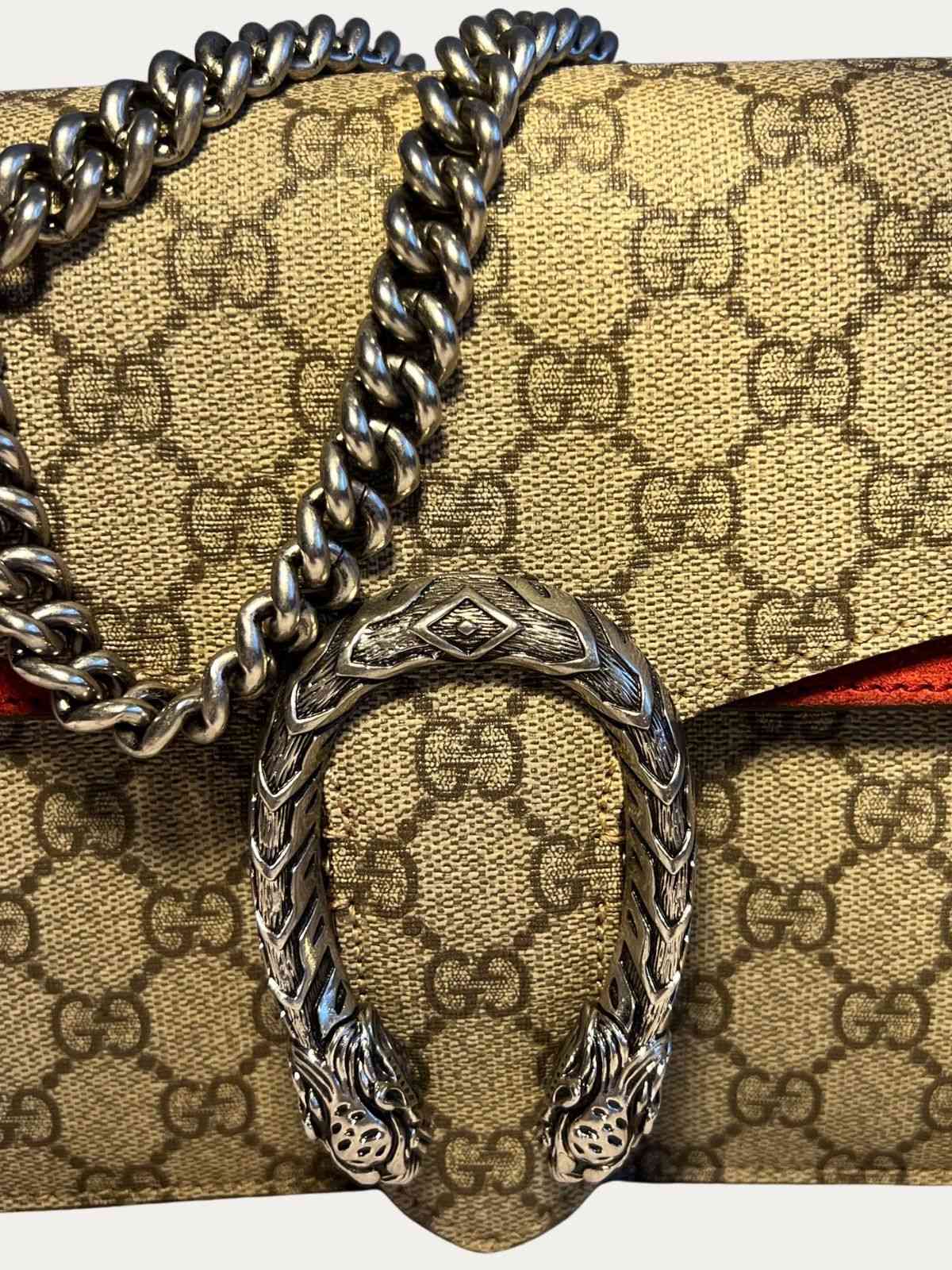 Gucci dyonisus medium torba, u vrlo dobrom stanju, sa blagim tragovima nošenja. Monogram canvas sa crvenim detaljima. Serijski broj: DO24851458