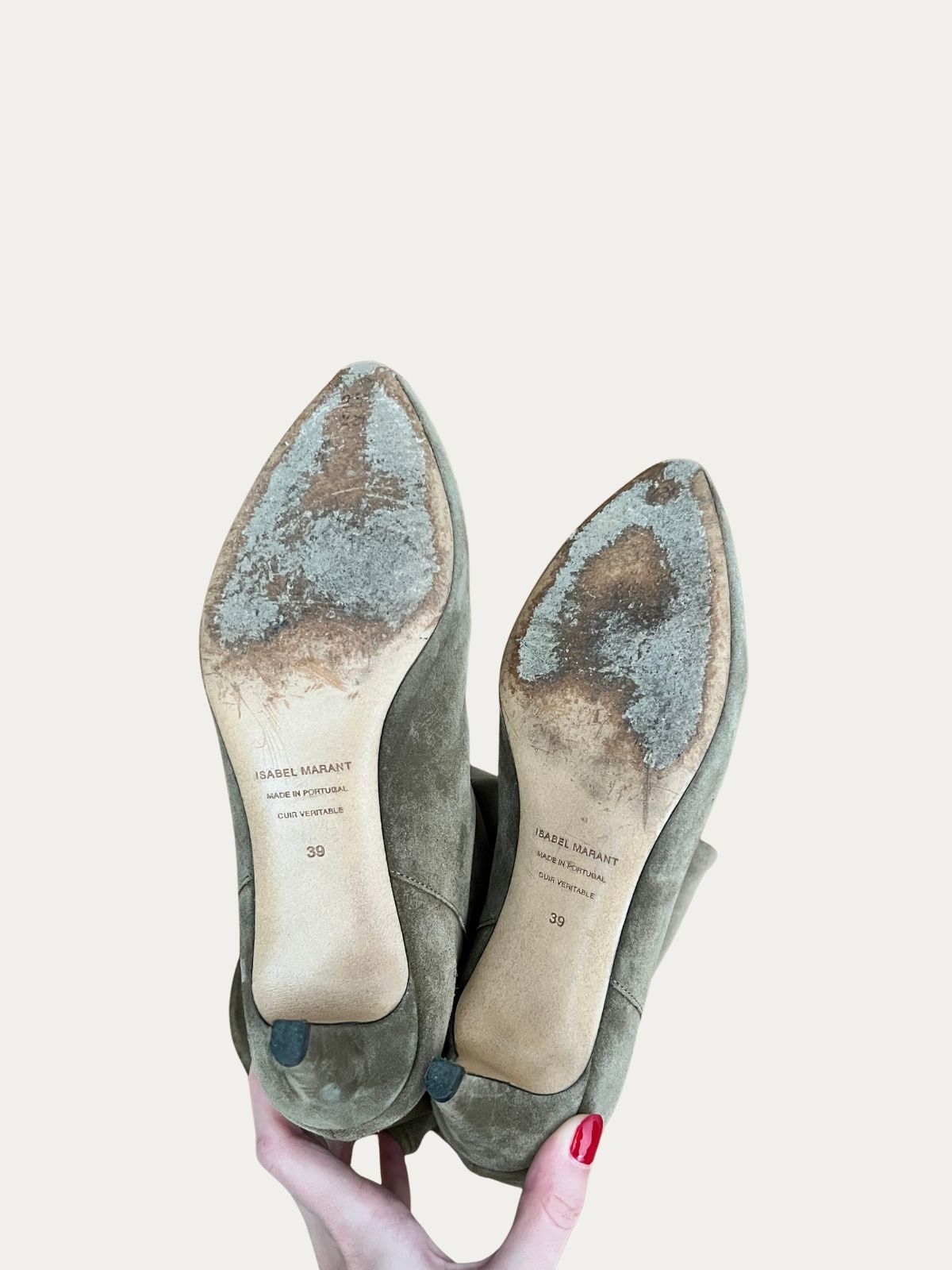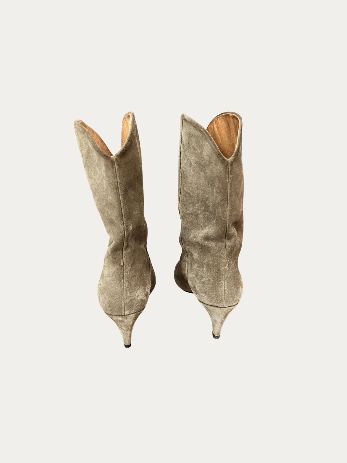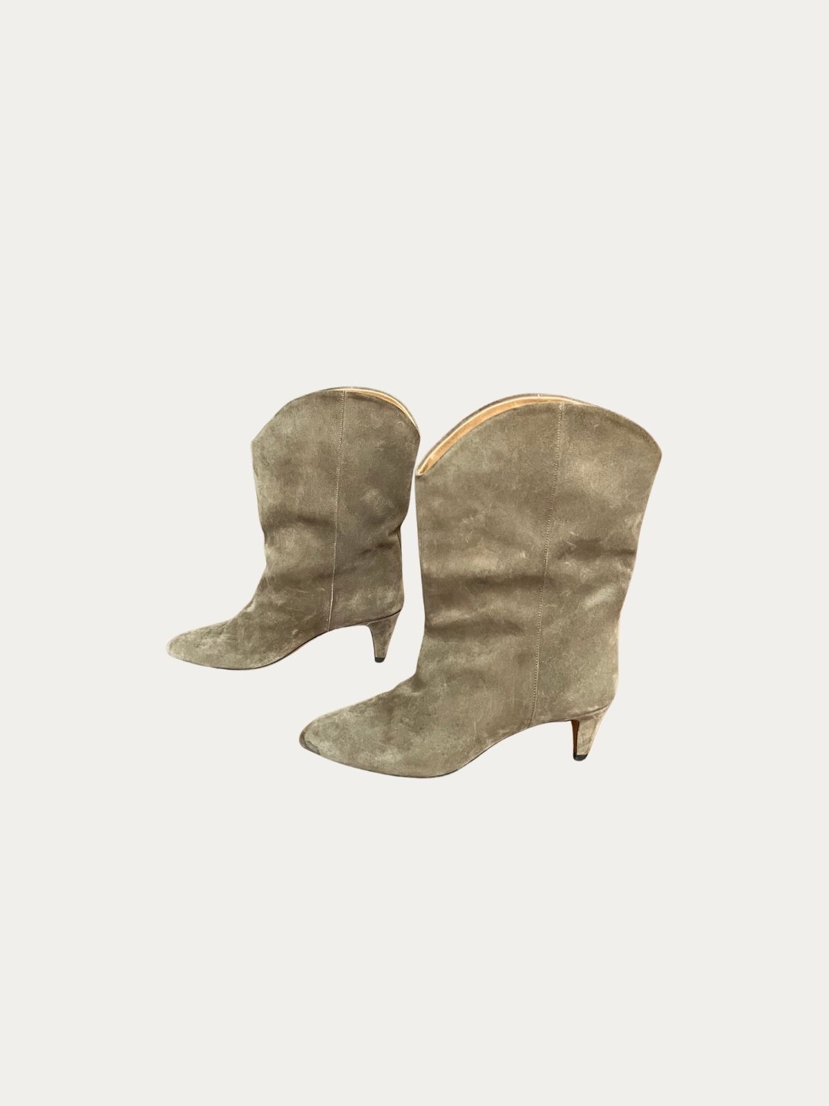 Isabel Marant čizme na štiklu od prevrnute kože. Nošene, tragovi nošenja prikazani na slici. Visina štikle: 6 cm.