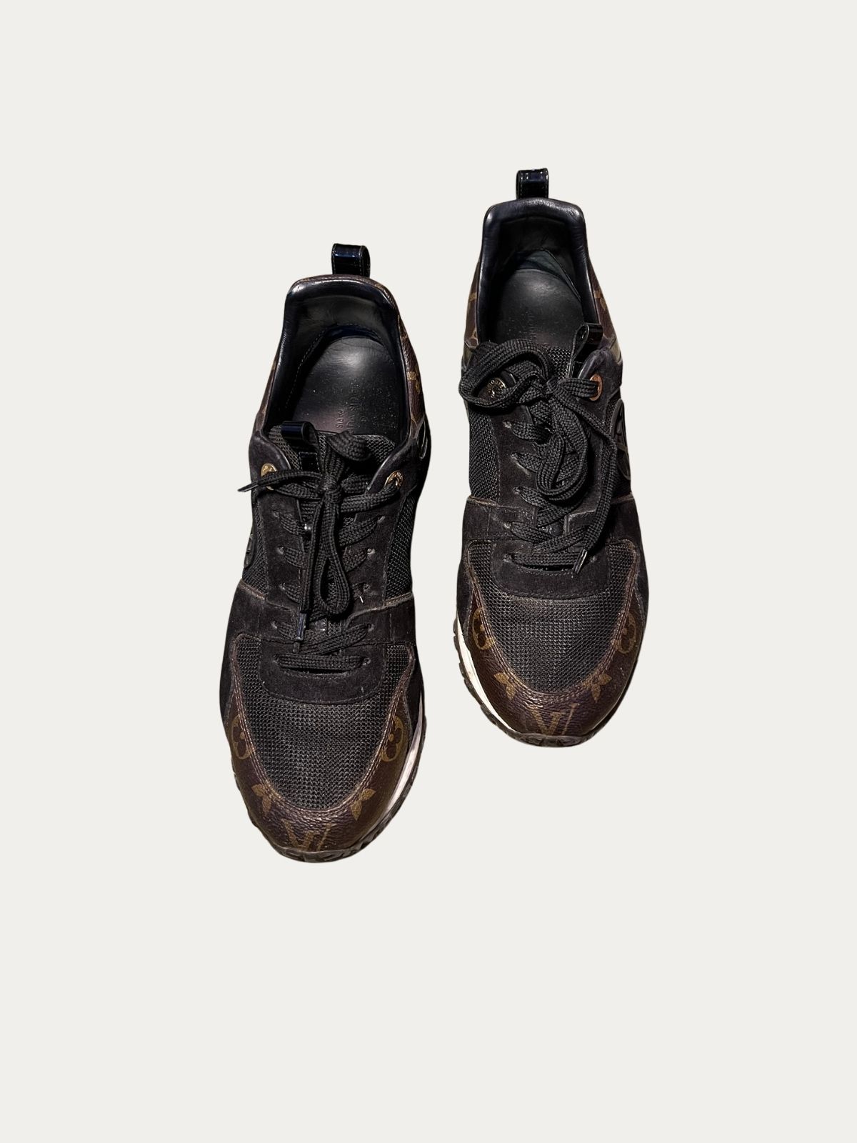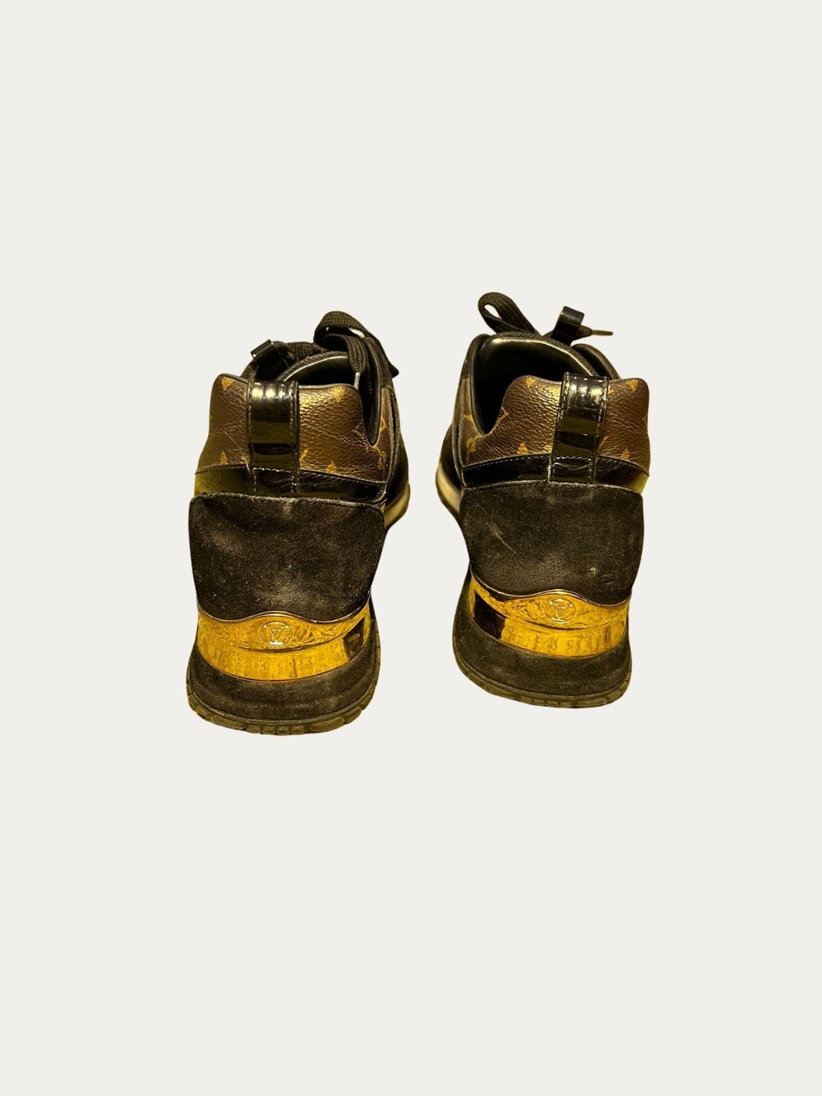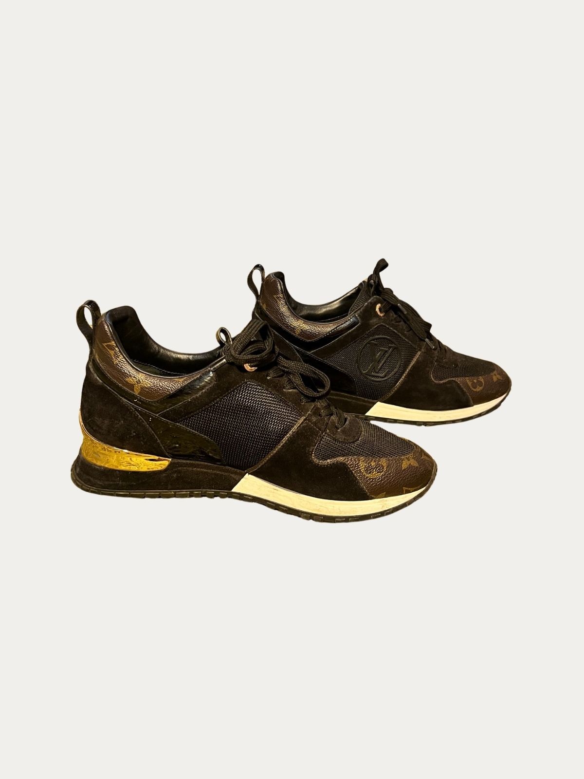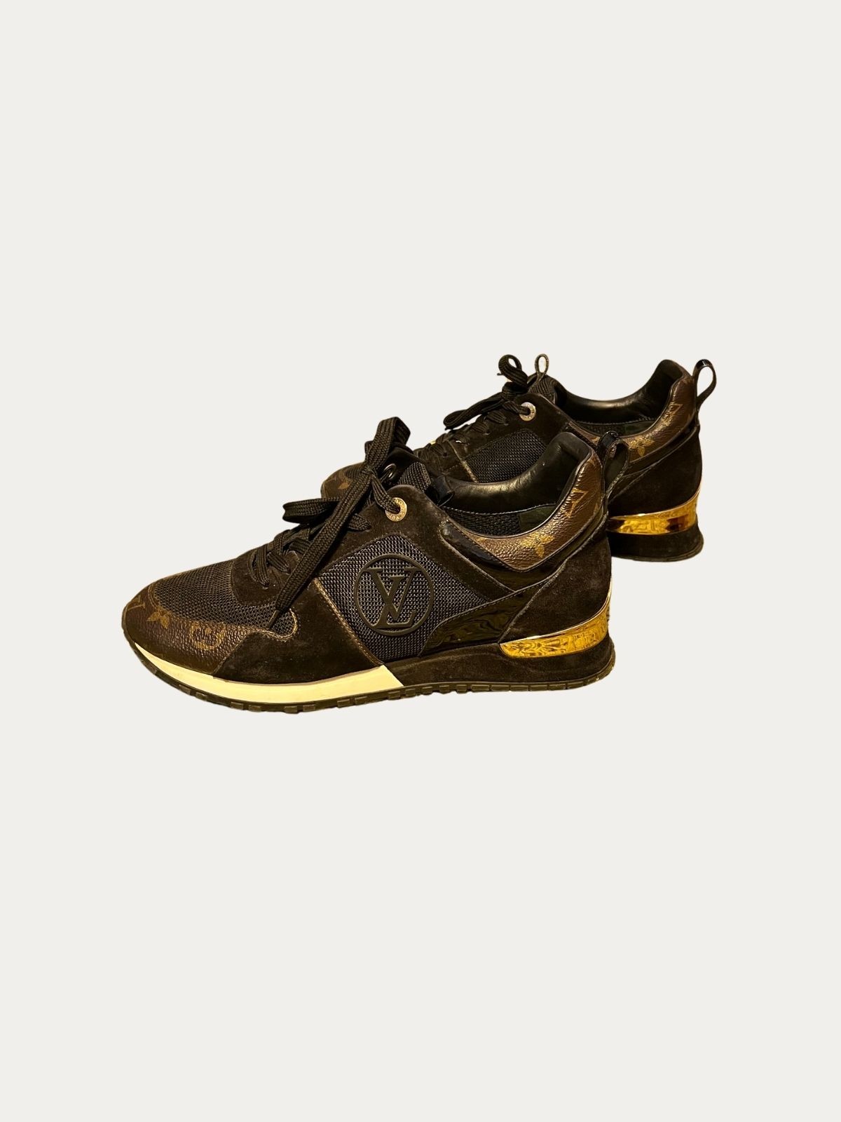 Louis Vuitton Run Away patike, crne sa braon monogram i zlatnim detaljima. Nošene, u dobrom stanju, sa tragovima nošenja. Broj: 39.